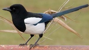 Met zijn zwart-witte verenkleed en zwarte snavel en poten is de ekster...