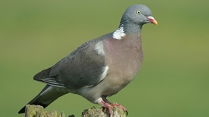 De houtduif is grijs van kleur, heeft een witte vlek in de nek en een brede...